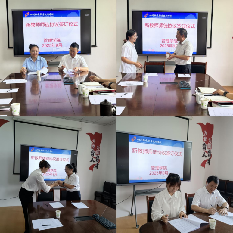 (管理学院 包小英)为助力新教师快速适应教学岗位、提升专业素养,夯实学院教育教学育人质量根基,9月10日,学院在二教412会议室举行新教师师徒协议签订仪式。学院负责人、教研室主任、骨干教师及新入职教师共同参与了此次活动。