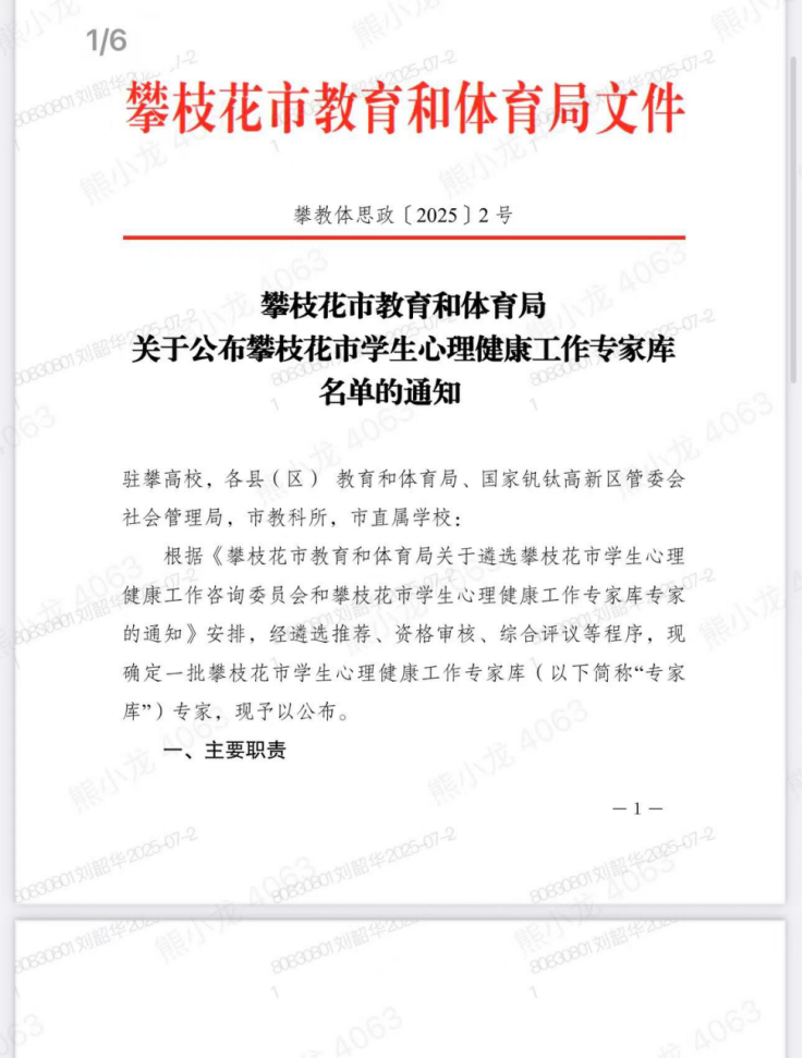 此次四位教师入选专家库,将进一步推动学院心理健康教育工作与地方教育需求的深度融合,为攀枝花市学生心理健康事业贡献更多力量。